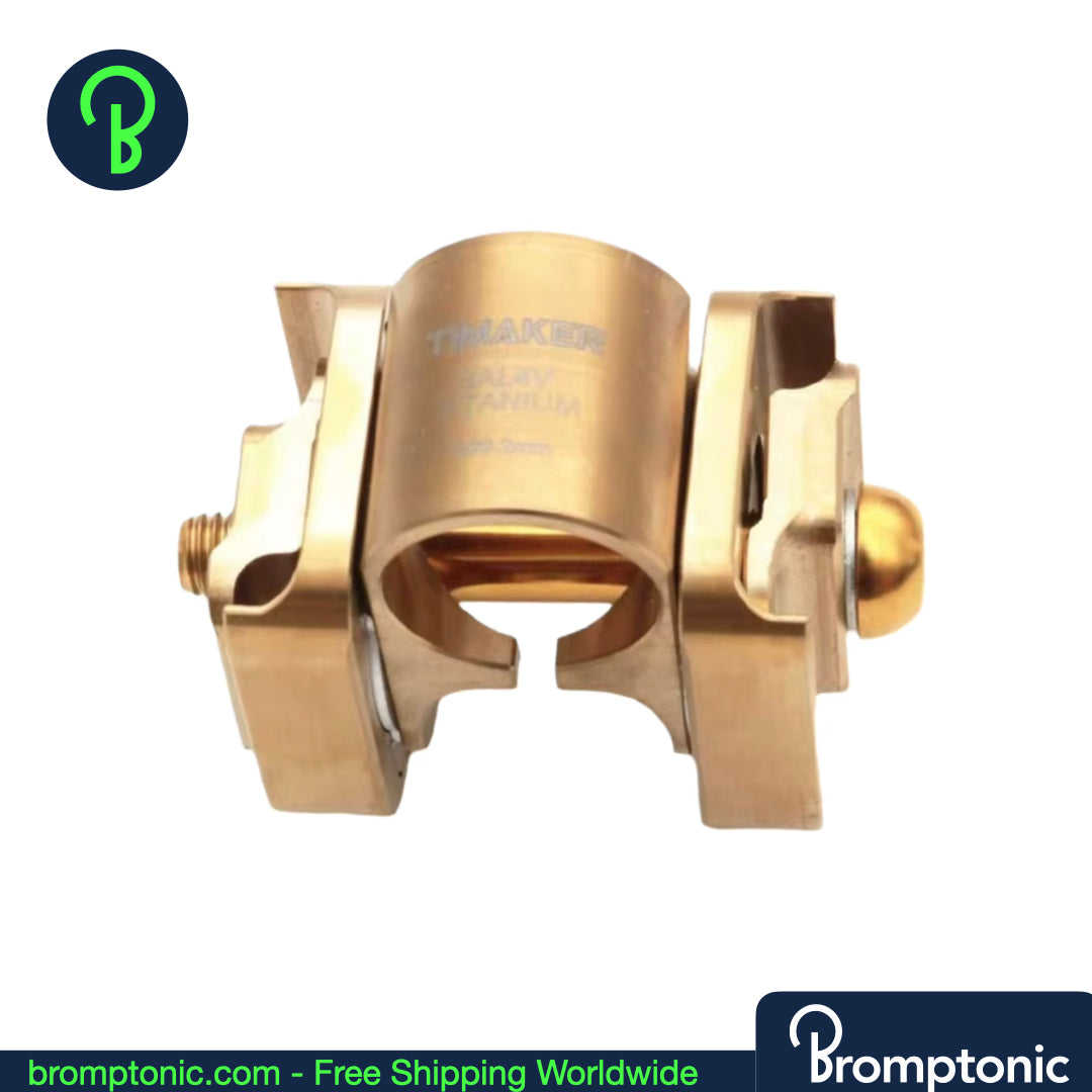 A lightweight and durable titanium seatpost clamp designed for Brompton bikes using a round-head seatpost (22.2 mm).