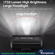 The Brompton 1750 Lumens Handlebar Bike Light is built for cyclists seeking powerful illumination and durability. With up to 1750 lumens, it ensures maximum visibility and safety, whether you're riding during the day or night. Designed for long-lasting use, it’s perfect for commuters, road cyclists, or those who love nighttime adventures.